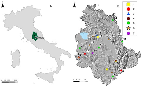 23]. Perugia is located along the western edge of the Tiberino Basin, the largest basin in Umbria (about 1800 km