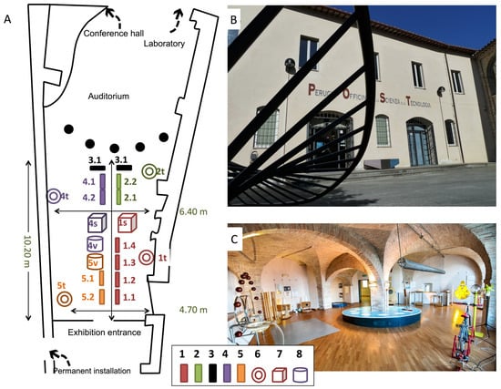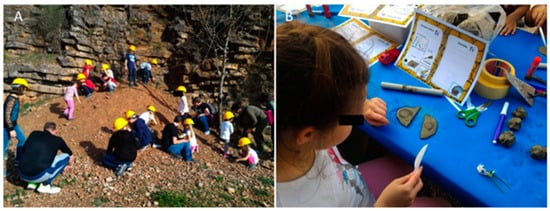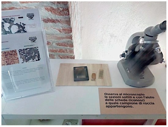 Figure 15A). Moreover, the material presented in the exhibition represented an important resource to be used in the activities of dissemination and information about the degrees in geology offered by the University of Perugia to different schools in the city.