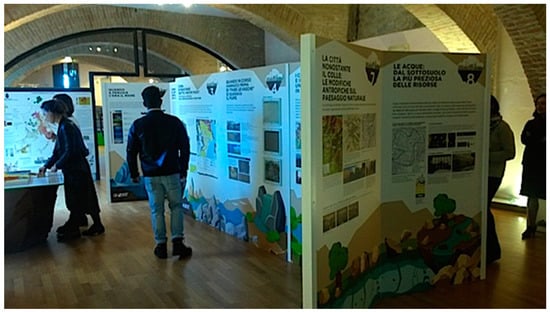 The “Perugia Upside-Down” exhibition was the first experience of geotourism dedicated to urban geology in the city of Perugia. 8046 people, 3915 of whom were students, visited the exhibition. This number is a good result for the city and an excellent outcome for the POST Museum, which is dedicated exclusively to scientific topics. Panels, real samples in showcases, videos, and multimedia tools are the avenues chosen to involve the public in themes present in the exhibition. Didactic laboratories and urban trekking are an incisive answer to “force” the visitors in moving out from the museum and discovering the contents of the exhibition in the real world. Moreover, Perugia, if compared with other cities like Roma or Milan, has the great opportunity to be in a hilly environment. Trekking activities may exploit several scenic views and the geomorphological experience could be much more interesting and richer.