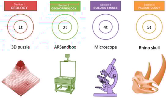Figure 1B). Five of them are focused on paleontological heritage and as many on a wider naturalistic aspect where the geological component is only a part of the exhibition. Three museums are devoted to general aspects of local geology, while one is dedicated to mining activity, one to volcanology and another one to hydrogeology. All these museums offer occasional didactic laboratories but only the remaining three museums have permanent laboratories and exhibitions for didactic purposes. In