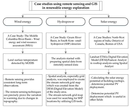Figure 5 shows a flowchart with application of remote sensing in exploring renewable energy resources. The explainataion about each case study is given below.