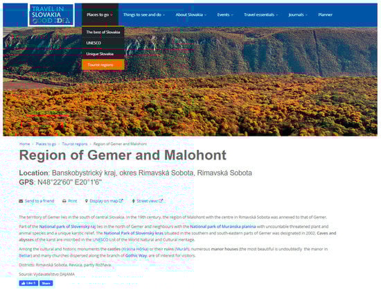 National Park of Slovenský raj (a four-step access path: Places to Go–Tourist Regions–Region of Gemer and Malohont–National Park of Slovenský Raj). Source: [].