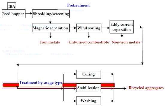 Figure 2. Flowchart of MSW incineration bottom ash (IBA) recycling treatment in Taiwan.