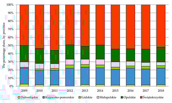- The Statistics Poland (GUS). Production of Industrial Products in 2019 (and Unpublished Data); GUS: Warszawa, Poland, 2019. Available online: https://stat.gov.pl/obszary-tematyczne/przemysl-budownictwo-srodki-trwale/przemysl/produkcja-wyrobow-przemyslowych-w-2019-roku (accessed on 31 July 2020).