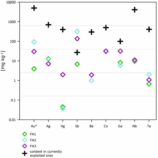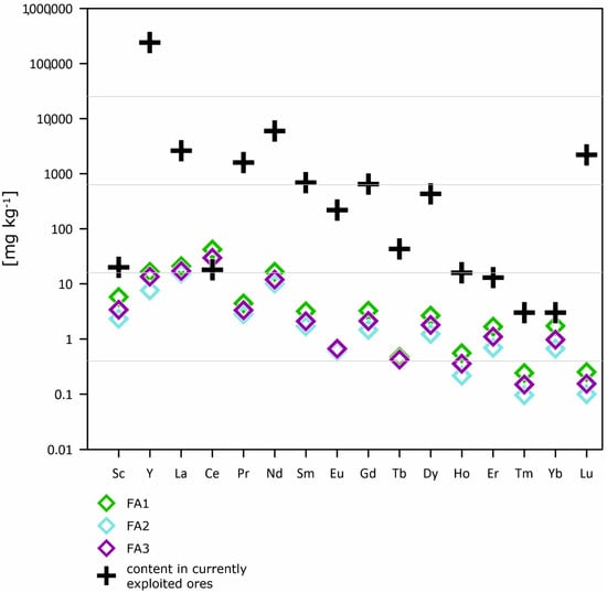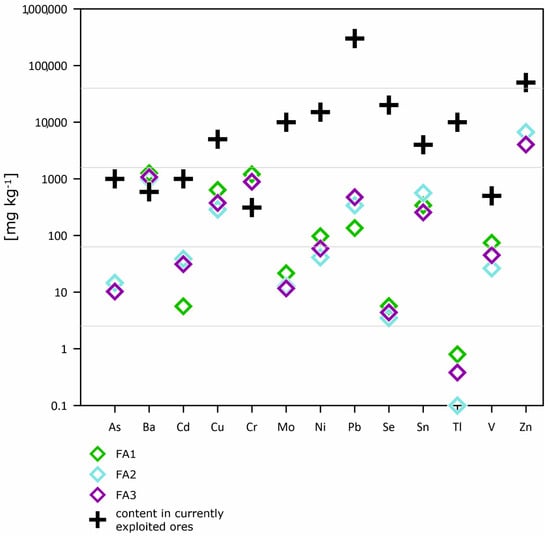 - FA contains more valuable and critical elements in comparison to the Earth materials, but less in comparison to the content of currently exploited ores; thus, the recovery of elements from FA seems to be unprofitable or unreasonable as direct extraction from unprocessed materials.