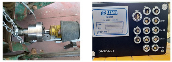 (a) The torque-meter connected to the power take-off (PTO); (b) The acquisition system of the torque-meter.
