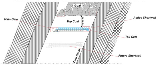Diagram of an inclined wall mined by the longwall top coal caving (LTCC) system in the Dayuan Coal Mine [4].