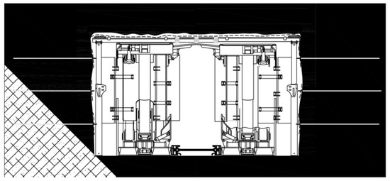 Similar to stepped ramp cutting, the sub-level drifts were cut out by the roadheader technology using typical transportation machines and equipment. The sub-level drifts were executed with rectangular supports in compliance with the shape of the powered support set used in the mining face at the mining works stage. A diagram of the rectangular sub-level drift support is presented in Figure 8.