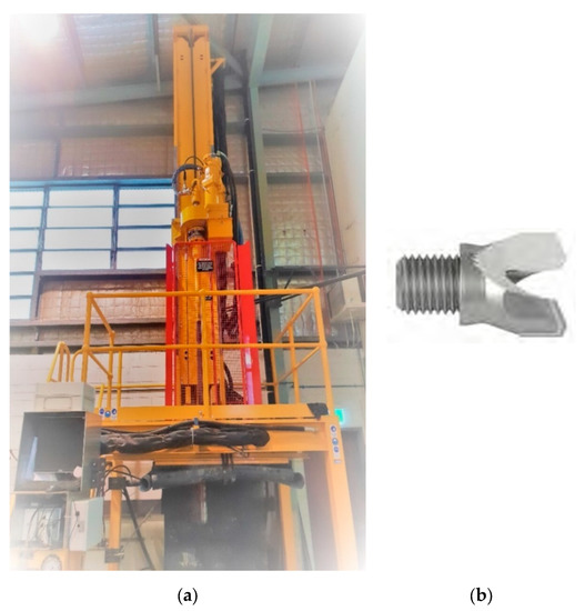 (a) Drill rig used in the experiment. (b) Sample drill bit.