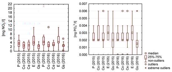 - Koszelnik, P. Atmospheric deposition as a source of nitrogen and phosphorus loads into the Rzeszow 5 reservoir, SE Poland. Environ. Prot. Eng. 2007, 33, 157–164. [Google Scholar]