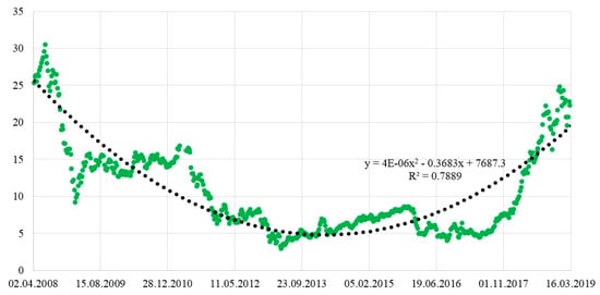 Another example is related to the influence of natural disasters. In accordance with [30], the annual volumes of CO2 emissions caused by volcanic activity may amount to almost 0.05–0.3 Gt per year. Another CO2 source is fires. For example, in 2010, forest fires in Russia resulted in CO2 emissions of more than 0.25 Gt [31]. Following the results of [32], the annual volume of CO2 emissions caused by forest fires in Russia amounted to more than 0.12 Gt for the period of 1998–2010. Forest fires in Indonesia in 1997 produced from 0.81 to 2.57 Gt of CO2 [33]. CO2 emissions as a result of burning peatlands in South-Eastern Asia are estimated at 0.637–2.255 Gt per year [34]. These are some examples of natural factors influencing the higher volume of greenhouse gas emissions, while forest fires occur regularly, especially on peatlands. In addition, according to [35], the entire volume of carbon accumulated in the atmosphere is less than the basis point of total carbon on the planet, while 99% is underground. Emissions of other greenhouse gases (CH4, NOx, etc.) have been studied to a very limited extent [36,37,38,39], making it quite complicated to assess their volumes in a substantiated way.
