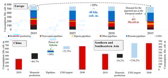 Expected growth in the consumption of natural gas by sources. Based on [95,96].