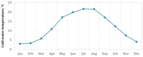 - Chmielewska, A. Fluctuating temperature of the mains water throughout the year and its influence on the consumption of energy for the purposes of DHW preparation. E3S Web Conf. 2018, 44, 00017. [Google Scholar] [CrossRef]