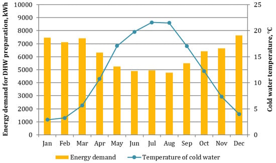 - Ahmed, K.; Pylsy, P.; Kurnitski, J. Monthly domestic hot water profiles for energy calculation in Finnish apartment buildings. Energy Build. 2015, 97, 77–85. [Google Scholar] [CrossRef]