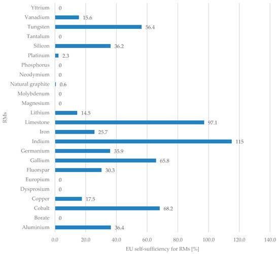 EU self-sufficiency in selected RMs in the EU (28) in 2016 (own insights, based on [11]).