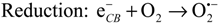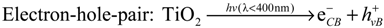 In the presence of TiO2, photocatalytically induced degradations by various ROS may compete with direct photolysis. Upon absorption of light, electrons are transferred from the valence band to the vacant conduction band of TiO2, thus generating electron-hole-pairs (eCB−/hVB+) (Equation (1)). ROS, mainly hydroxyl radicals (OH•) and superoxide radical anions (O2•−) can be formed through subsequent oxidation and reduction reactions (Equations (2) and (3)) [,,]. Other oxidizing species such as hydrogen peroxide H2O2 or singlet oxygen 1O2 may also be generated [,]. These ROS are known to react readily with organic molecules, thus causing degradation and ultimately mineralisation []: