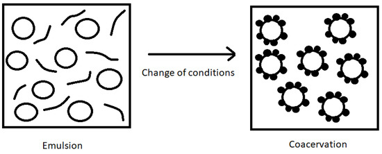 - Timilsena, Y.P.; Akanbi, T.O.; Khalid, N.; Adhikari, B.; Barrow, C.J. Complex coacervation: Principles, mechanisms and applications in microencapsulation. Int. J. Biol. Macromol. 2019, 121, 1276–1286. [Google Scholar] [CrossRef]