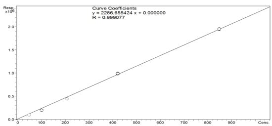 As a chronic degenerative and progressive disease, osteoarthritis affects the lives of people around the world, and to this day, no effective treatment has been developed. The main purpose of this study was to create dermocosmetic products with the potential to alleviate arthritis ailments. Glucosamine is an important precursor in the biochemical synthesis of glycosaminoglycans, which are major components of cartilage [32]. Moreover, icariin, due to its chondrogenic and osteoinductive potential, may be an effective promoter of bone regeneration [42,43,44]. In vitro studies have shown that icariin has the potential to promote bone engineering by initiating direct and stable chondrocyte differentiation, reducing its apoptosis, and creating an extracellular matrix by chondrocytes—without invoking a hypertrophy effect—due to the fact that it might be an effective accelerant of growth factors for cartilage [42,43]. A potent chondrogenic effect might be caused by the upregulation of the expression levels of aggrecan, collagen II, and SOX9 genes and the downregulation of the collagen I gene. Sun et al. have noted that the protection against cartilage and bone degradation is connected to the ability of icariin to inhibit the protease activity of cathepsin K [44]. Wiu et al. have established that icariin regulates articular bone loss, in part by regulating the receptor activator of the nuclear factor-B ligand RANKL (reduction) and osteoprotegrin OPG (enhancement) expression [45,46]. The data from clinical trials concerning the use of icariin in humans are limited. Only one blinded placebo control study has been reported. A randomized, double-blind study of Epimedium L. flavonoids that involved the administration of icariin (60 mg/day) to 100 postmenopausal women showed a significantly higher bone mineral density in the treatment group compared to the placebo group in 24 months [47]. It is important to remember that icariin has phytoestrogen activity, so it may disturb the endocrine system and connected pathways through oral administration, but this fact also indicates the superiority of topical application [48,49]. Unfortunately, there are just a few clinical studies that suggest that icariin might be helpful in OA treatment, and especially via topical administration, so this area needs to be further investigated. Both substances (icariin and glucosamine sulfate) are known to exhibit excellent therapeutic effects when used separately; due to their completely different mechanisms of action [33,50], they may also show a synergistic effect, which would be worth examining, especially due to the fact that glucosamine sulfate presents synergistic effects with a few NSAIDs and SYSADOA [40,51]. The determination of the icariin content in Epimedium L. (Species: Epimedium Koreanum) extract was essential in order to set the extract concentration in the target product formulation for further tests such that it is within the detection limits of the analytical devices used. The predicted concentration of icariin in the extract was very low based on the information from the manufacturer’s specification; the mixture that was provided contained only 5 wt.% of Epimedium L. (Species: Epimedium Koreanum) extract and a much smaller amount of icariin. The LC-MS method was selected to conduct content analysis due to its high specificity, as only selected ions produced from the analytes of interest are monitored. This analysis allowed for the determination of the quantitative composition of the formulation such that it fell within the limits of detection of the devices used. The calibration function for a standard was made by injecting five different concentrations of reference solution in triplicate. The regression coefficient was 0.999 for the calibration curve, which demonstrates good linearity over the linear range (Figure 1). The LC-MS analysis showed an average of 168.76 ng of icariin per 1 mL of Epimedium L. (Species: Epimedium Koreanum) extract, which would be under the detection limit while using the standard of 1–5 wt.% of the extract. This result enabled the content of the extract in the product mass, which was set at the level of 70%, to be within the detection limits of icariin for further analysis, and faclilitated the determination of the amount of icariin corresponding to the extract in the in vitro permeation study.