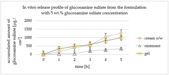 Accumulated amount of glucosamine sulfate—in vitro release study for 5 wt.% formulation.