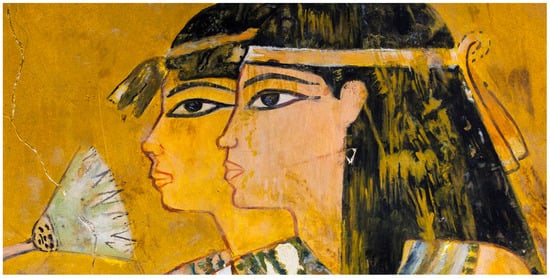 Cosmetics were an integral part of early Egyptian life, dating back to as early as 5000 BC [1,2,3,4]. Ahead of their time, the Egyptians were sophisticated cosmetic chemist formulators. Bathing was a part of their daily life, with most Egyptians bathing at home or in the river. Cleansing cream was made of animal fat or vegetable oil mixed with powdered lime and perfume. Oils and creams were used for protection against the harsh sun, wind, and dry climate. The lips and cheeks were treated with red ochre ground in water. People rubbed themselves daily with perfumed unguent oil that was soaked in scented wood. Perfumes were made of myrrh, thyme, marjoram, chamomile, lavender, lily, peppermint, rosemary, cedar, rose, aloe, olive oil, sesame oil, and almond oil [1]. The use of perfume had a very spiritual significance and was believed to optimize body function. Fingernails and the palms of the hands were treated with henna, producing an orange-red tone. In general, the variety of pigments based on natural minerals used by the ancient Egyptians for cosmetics is impressive [5,6].
