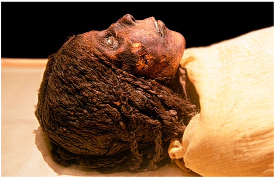 It should also be noted that, in some cases, ancient Egyptians shaved their heads to cope with the extreme heat as well as for sanitary reasons. Wigs have been found in excavations of Egyptian tombs, and it is believed that wigs probably were worn on the shaved scalp [17]. Furthermore, archeologists suggest that wigs were placed on the heads of shaved mummies to prepare them for the afterlife. For example, Queen Nodjmet who was relatively old when she died in 1064 BC, was found to have a wig believed to help her look younger for the afterlife (see Figure 3).
