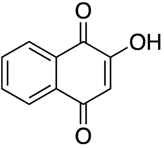 Molecular structure of lawsone, the principal dye molecule in henna.
