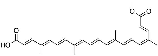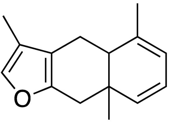 Myrrh has been used to treat ailments of the skin since antiquity. It is obtained from the sap that is secreted as an exudate from the Commiphora myrrha tree. Myrrh is considered a natural remedy for wounds, infections, and acne and is also used as a perfume agent. The antiseptic, anesthetic, and antitumor properties of myrrh are attributed to the terpenoids (isoprenoids), especially the furanosesquiterpenes [72]. See Figure 8 for a representative example of a molecule from the furanosesquiterpenes class. Surprisingly, there have not been many studies aimed at better understanding the potential of myrrh in skin care [73,74]. There has been concern about potential skin sensitizers in myrrh due to the high degree of variability in the sources of myrrh and the complex nature of the myrrh exudate [75].