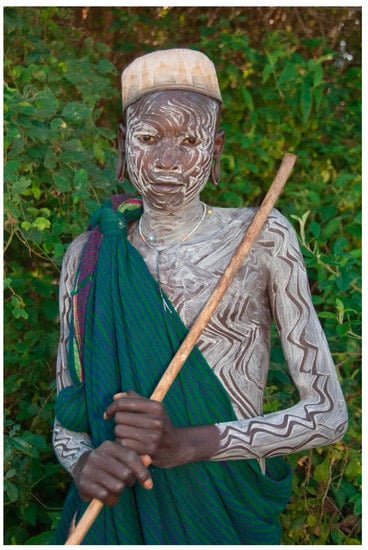 - Beckwith, C.; Fisher, A. Painted Bodies: African Body Painting, Tattoos, and Scarification; Rizzoli: New York, NY, USA, 2012. [Google Scholar]