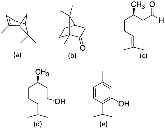 - Sharmeen, J.; Mahomoodally, F.; Zengin, G.; Maggi, F. Essential oils as natural sources of fragrance compounds for cosmetics and cosmeceuticals. Molecules 2021, 26, 666. [Google Scholar] [CrossRef]
