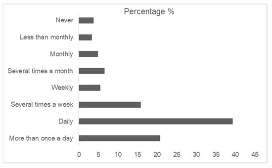 Frequency of use of cosmetic creams by women (expressed as percentage). n = 192.