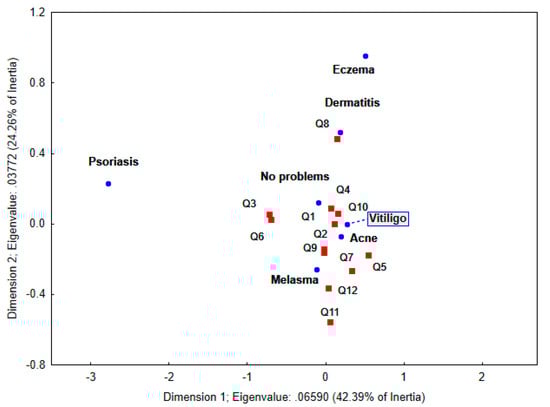 Correspondence analysis performed on data from CATA questions and skin problems.