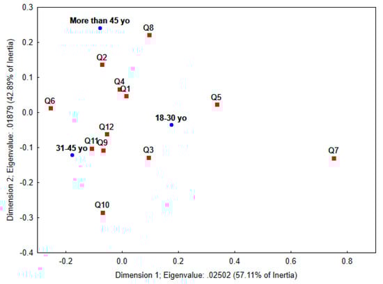 Finally, besides the answers that guided this research, this study provided important insight into the use of the CATA questions in the evaluation of the perception of cosmetic products. The CATA technique proved to be a useful tool to understand the knowledge of a specific topic, but also indirectly showed the lack of it. The absence of markings in both sentences (statement and its opposite) revealed the lack of awareness of the topic. Even so, the joint analysis of CATA questions and correspondence allowed for an understanding of the relationship between knowledge or the lack thereof and the sociodemographic characteristics of the consumers.