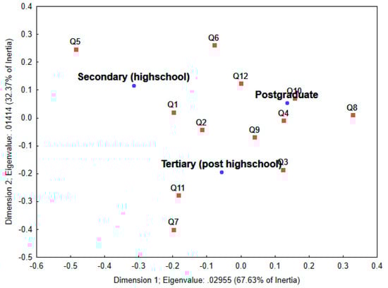 Correspondence analysis performed on data from CATA questions and scholarity.