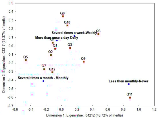 Analysis of the CATA data was performed by Cochran’s Q test carried out amongst all statements with a 5% significance level (α = 0.05) [25]. To better understand and visualize the relation between CATA sentences and demographic traits, correspondence analysis (CA) was applied [26]. The data were analyzed using Statistica 12.7 and XLSTAT by Addinsoft.