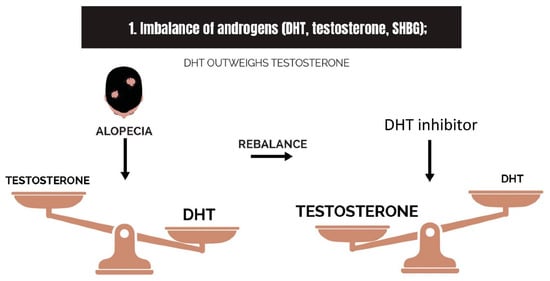 2.1. Imbalance of Androgens (DHT, Testosterone, and SHBG) in Cases of Androgenetic Alopecia