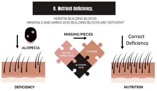 As previously mentioned, a significant number of individuals who are living with AGA are also experiencing another alopecia comorbidity, such as central centrifugal cicatricial alopecia [24], other mild cases of scarring alopecia, or telogen effluvium. The current narrative suggests that this is the reason why so many individuals fail to obtain satisfactory results by targeting only the androgen in therapy. It is likely that such individuals will be diagnosed with two or more of the eight strikes against hair health, wherein DHT is an equal or lesser etiological component.