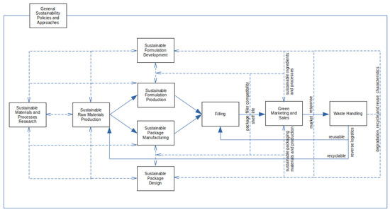 Environmental issues are inextricably intertwined with technological, social, and economic issues, as well as, especially for consumer industries, psychological factors with individual-to-individual variations. The inclusion of environmental considerations often requires engineers to interact with areas outside of their expertise [165]. Re-engineering the supply chain and internal processes could require input from several areas, as indicated in Figure 3.