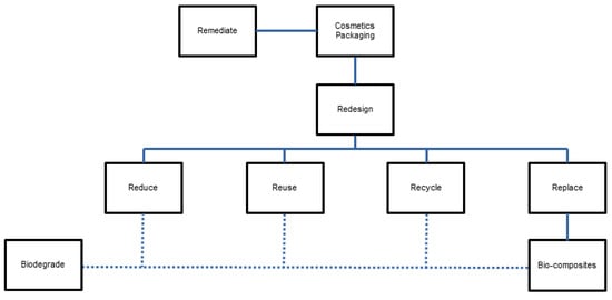 The cosmetic industry has made significant attempts towards minimizing environmental and social impacts, including for packaging. Natura and its brands have been mentioned often in the literature with regard to environmental innovation, such as refillable packaging based on plastic film that reduces transportation impact and waste; products 100% free of animal ingredients; the use of plastic from sugercane; reductions in the products’ water and carbon footprints; and annual sustainability reporting since 2001, with a focus on achieving the use of Brazil’s biodiversity in a sustainable manner [22,23]. Case studies also include L’Oreal, which has set a goal to have 95% biobased materials, derived from abundant minerals or from circular processes [24], and has 10 rules for eco-design, including the use of safe packaging in terms of environment and health; reduction in material usage and unnecessary packaging; preference to large formats; the use of less impactful materials and those that come from sustainably managed sources; not shifting burdens to other parties; reusable packages; consumer guidance for appropriate disposal; and facilitating post-use management, which have been implemented in its sustainable product optimization tool [25]. The company also uses technological advancements and third-party collaborations for waste management, similar to L’Occitane [26]. DM Cosmetics has introduced greener packaging and inks; Frosch has introduced 100% high-density polyethylene from post-consumer recyclables; ZAO has developed bamboo packaging; and P&G is facilitating recycling through its PureCycle program, while Estee Lauder’s MAC cosmetics has introduced Back-to-M.A.C. to return primary packaging for recycling [27]. Certain P&G brands also have resusable, recyclable, and refillable packages, while companies such as Lush (see also [22]) have, at times, removed all packaging, and several smaller companies have adopted similar approaches to reduce, reuse, and recycle [26].