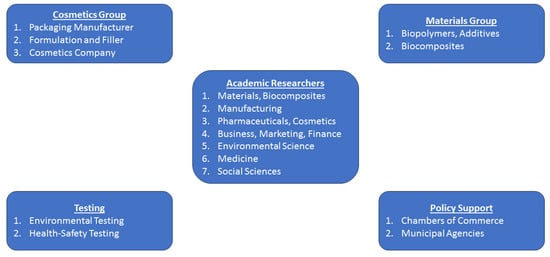 There is a convergence in corporate social responsibility (CSR) and the circular economy (CE) amongst cosmetics MNCs, and CSR reports of eight cosmetics MNCs show a focus on CE that is is not observable in the CSR actions of SMEs [53]. MNCs fall under mandatory reporting requirements, and several of the statements are goals, such as objectives of zero waste in landfill and more than 90% recycling, or a recycling rate of 50%. Using the same sample, in terms of the adoption or pursuit of CE objectives, only four of the companies were clear about their CE objectives, and none of the firms used circularity ratios, although some used alternative sustainability ratios [54]. A sample of sustainable reports for the Italian cosmetics industry for the period 2014–2019 shows terms related to the environment to be somewhat more frequent but also shows CE to be under-reported for governance, strategy, management, and performance, indicating the need for greater institutional, regulatory, and stakeholder pressure on companies [55]. International cosmetics companies are increasingly creating lines using natural products, particularly for shampoos in conjunction with large chemical manufacturers who have set up lines for natural raw materials and who support fair trade and social programs in various countries [56]. A sample of eight small and large cosmetics companies in Brazil suggests the companies to be focused on environmental aspects in design and sourcing and that while CSR compliance is improving, compliance with design for sustainability (DfS) principles is still in its early stages [57]. Organizations with innovation power such as Natura, a Brazilian cosmetics multinational with 5000 organizations in its supply chain, can proactively introduce innovation to further green supply chain management, while companies that cannot innovate may simply be resigned to palliative social efforts and greenwashing [58]. Informal CSR may allow SMEs to benefit more from radical innovation rather than incremental gains in efficiency [59,60]. In plastics waste management, startups have attempted strong sustainability while optimizing for environmental impact, as opposed to weakly sustainable firms that were motivated by competition, competitive advantage, and financial motivations and optimized on economic factors while incorporating environmental variables [61]. Startups, though, occupied niche markets with limited scope for growth and were at a disadvantage in terms of access to technical expertise and financing [61].