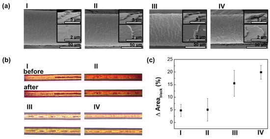 Figure 3b. More black areas were created in the hair where the cuticle was lifted the most. The black areas of the four groups were calculated, and the changes in area are plotted in