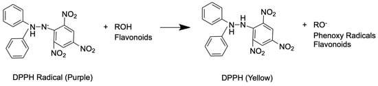 In flavonoid compounds, the free radical scavenging activity is believed to be influenced by the number and position of phenolic hydrogens in the molecule. Thus, a higher antioxidant activity will be produced in phenolic compounds that have a more significant number of hydroxyl groups in their flavonoid core. These phenolic compounds can donate hydrogen; therefore, the antioxidant activity of phenolic compounds can be produced in the free radical neutralization reaction, which initiates the oxidation process or terminates the chain radical reaction that occurs [1,4,51].