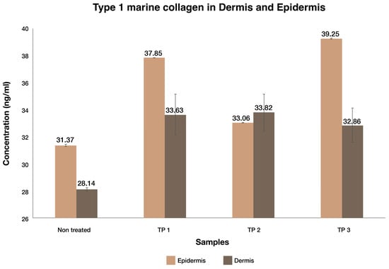 Estimation of type 1 marine collagen in epidermis and dermis.