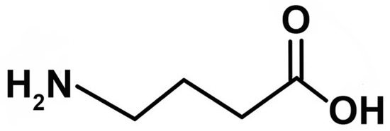 Chemical structure of gamma−aminobutyric acid (GABA).