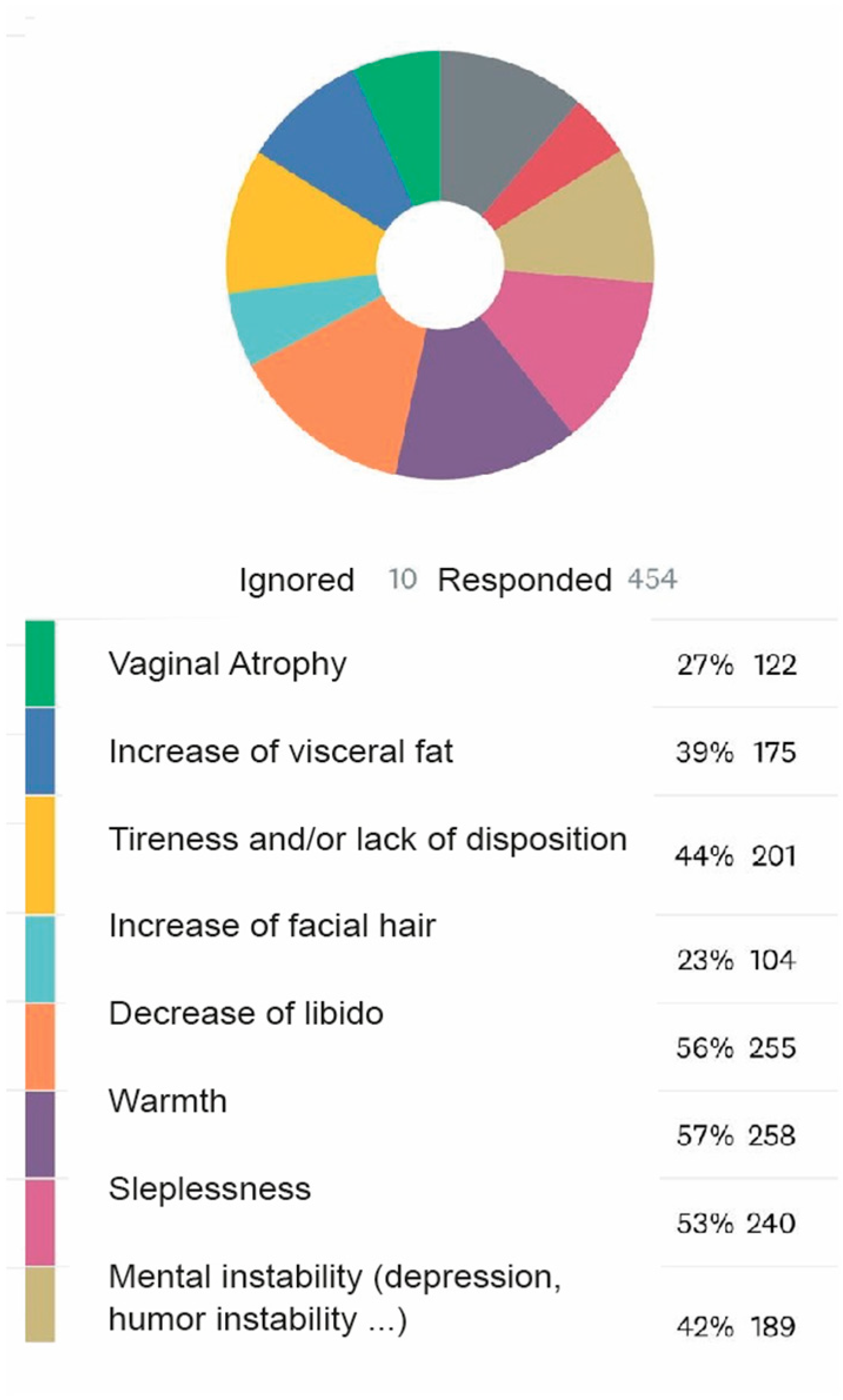 | There is a lack of cosmetic products aimed for menopausal women—% (n) | 74.0 (309) |