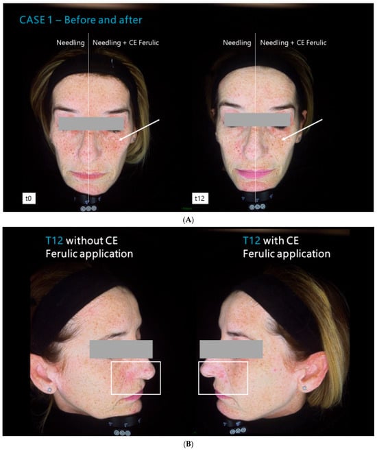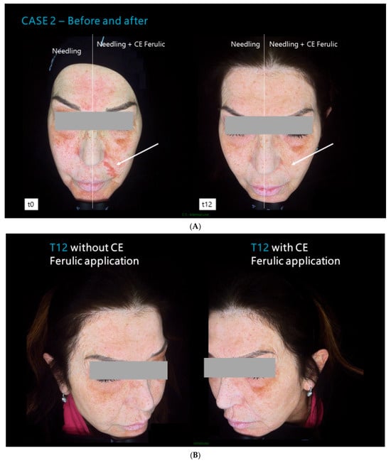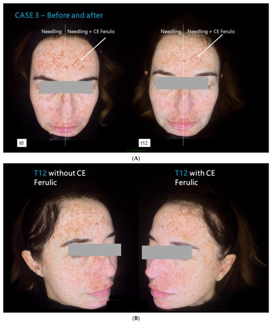 Proietti, I.; Guida, S.; Dybala, A.; Spagnoli, A.; Potenza, C. Effects of CE Ferulic® Combined with Microneedling in the Treatment of Pigmentary Disorders: A Monocentric, Split Face, Comparative Study. Cosmetics 2024, 11, 101. https://doi.org/10.3390/cosmetics11030101