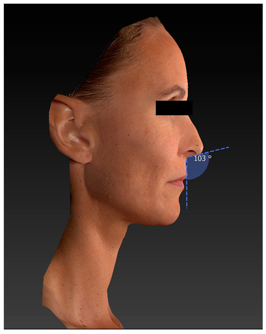 - Armijo, B.S.; Brown, M.; Guyuron, B. Defining the Ideal Nasolabial Angle. Plast. Reconstr. Surg. 2012, 129, 759–764. [Google Scholar] [CrossRef] [PubMed]