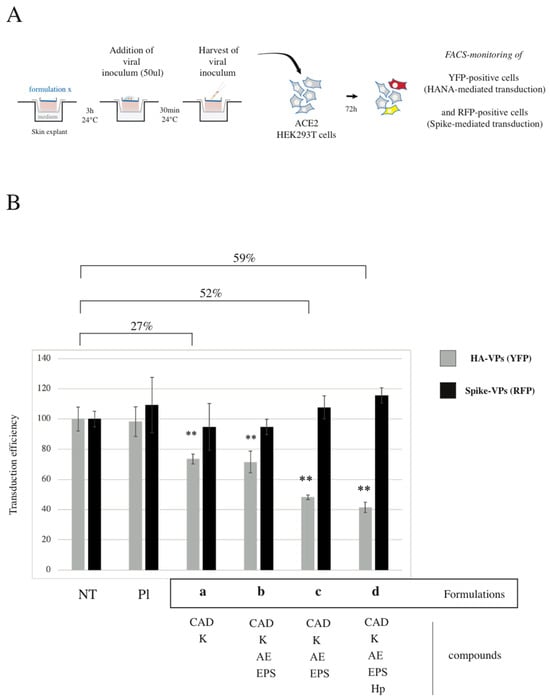 Figure 1D). This effect was confirmed when the two compounds were added to the cream formulation; those molecules remained active and limited the entry of HA-VPs, especially when the KLEPTOSE