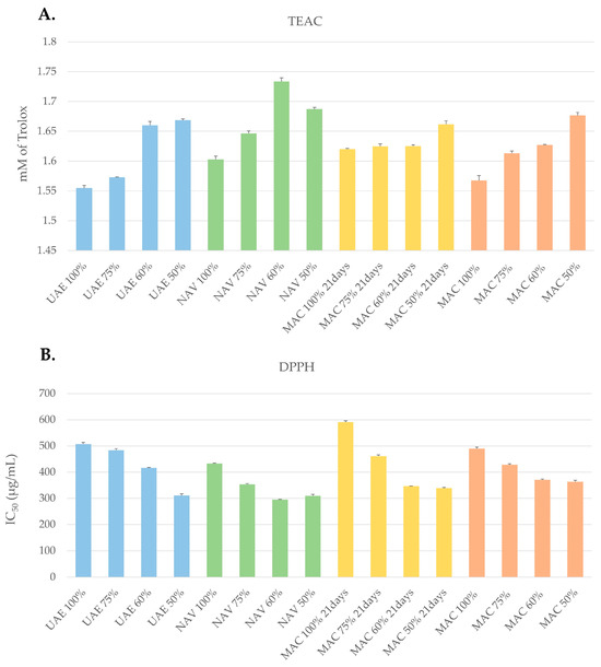 TEAC (A) and DPPH (B) assays of “green” extracts of C. nobile.