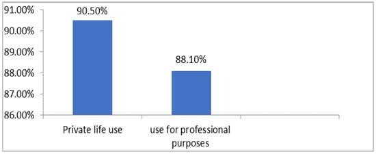 Among a total of 44 surgeons, 2 stated that they did not use social networks, representing 9%. We therefore focused on the 42 surgeons who were active on social networks to identify their patterns of use. Among the 42 surgeons, 88.1% of them were found to use social networks for professional purposes and, 90% were also found to use SN for personal and family purposes (Figure 2).