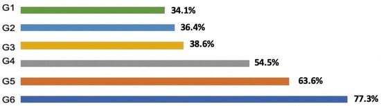 Reasons why surgeons use social platforms. G1—Information about own surgical procedures and techniques, G2—Sharing before/after photos, G3—Correcting misconceptions that the general public has about plastic surgery, G4—Information about own non-surgical activity, G5—Sharing scientific articles/conferences/webinars, G6—Recruiting patients by promoting my latest achievements.